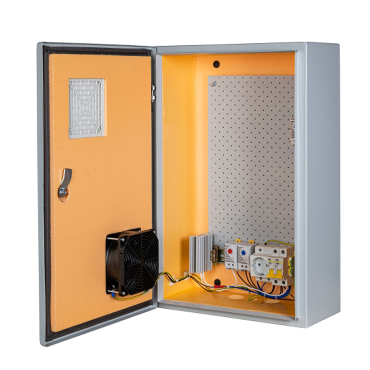 Климатический навесной шкаф с активной вентиляцией и с защитным реле от «холодного» пуска, IP54. Термошкаф оснащен системой автоматического поддержания заданной температуры и относительной влажности.