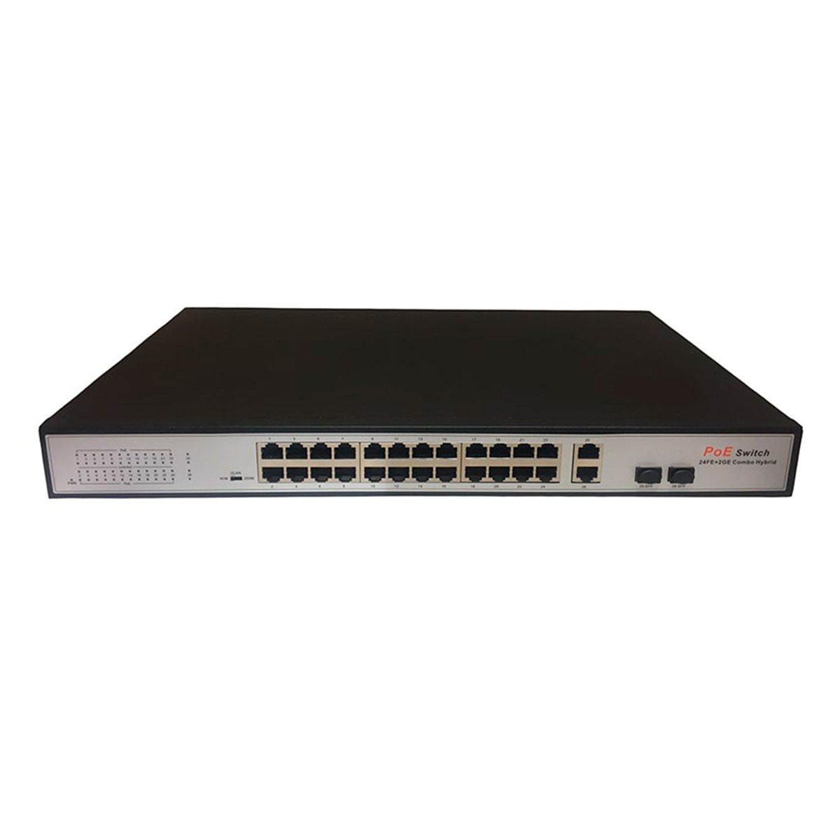 • пopты 24×10/100 Mбит/c. PoE + 2×10/100/1000 Mбит/c. Uplink + 2×SFP.