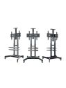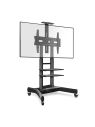 Благодаря вращающимся на 360° колесам со стопорами, легко перемещается по помещению, быстро собирается и разбирается. Оборудована тремя полочками, две из которых, расположенные под монитором, предназначены для установки видеотехники и другого оборудования и рассчитаны на нагрузку до 8 кг каждая. Верхняя служит для размещения веб- или видеокамеры. Высоту экрана можно регулировать от 120 до 153 см. Кабель-канал внутри стойки позволяет спрятать кабели.