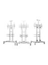 Благодаря вращающимся на 360° колесам со стопорами, легко перемещается по помещению, быстро собирается и разбирается. Оборудована тремя полочками, две из которых, расположенные под монитором, предназначены для установки видеотехники и другого оборудования и рассчитаны на нагрузку до 8 кг каждая. Верхняя служит для размещения веб- или видеокамеры. Высоту экрана можно регулировать от 120 до 153 см. Кабель-канал внутри стойки позволяет спрятать кабели.