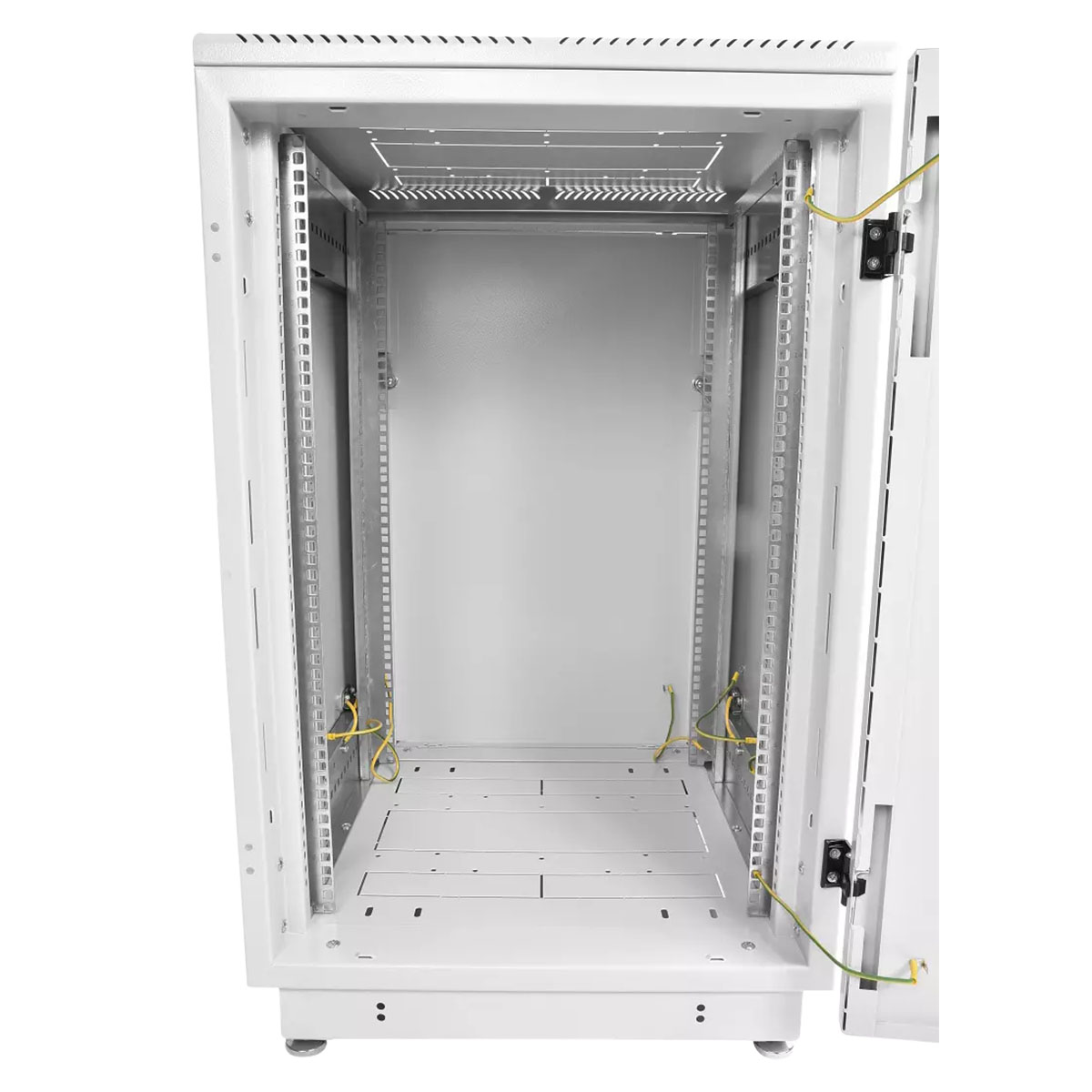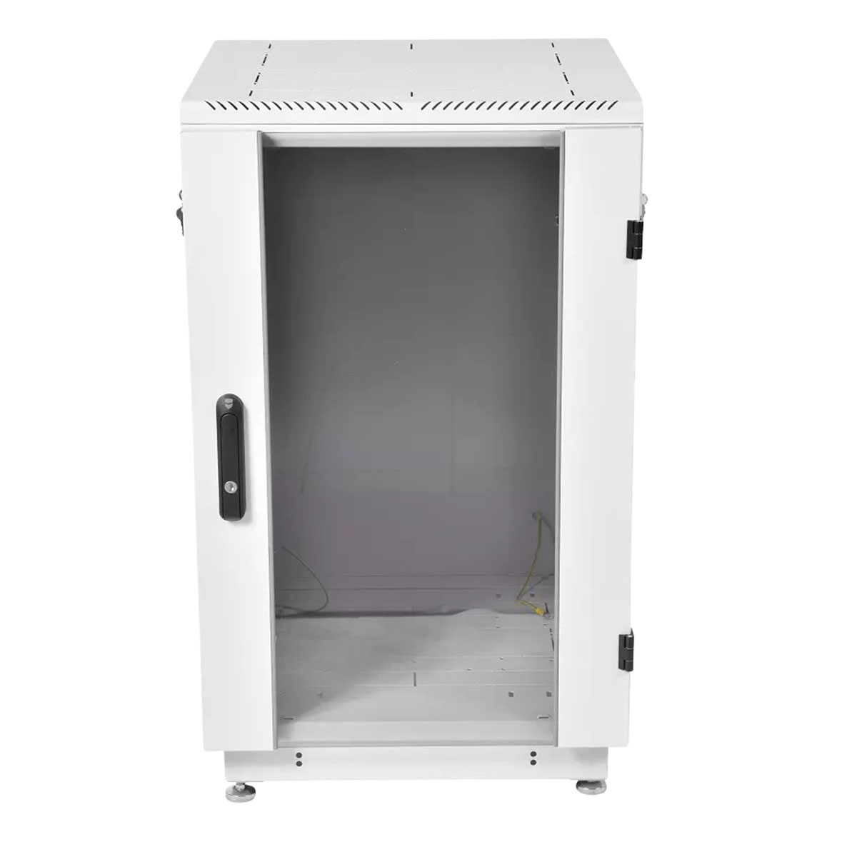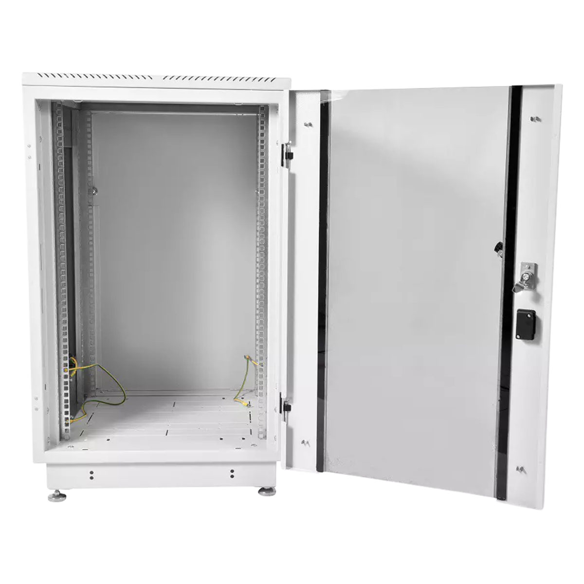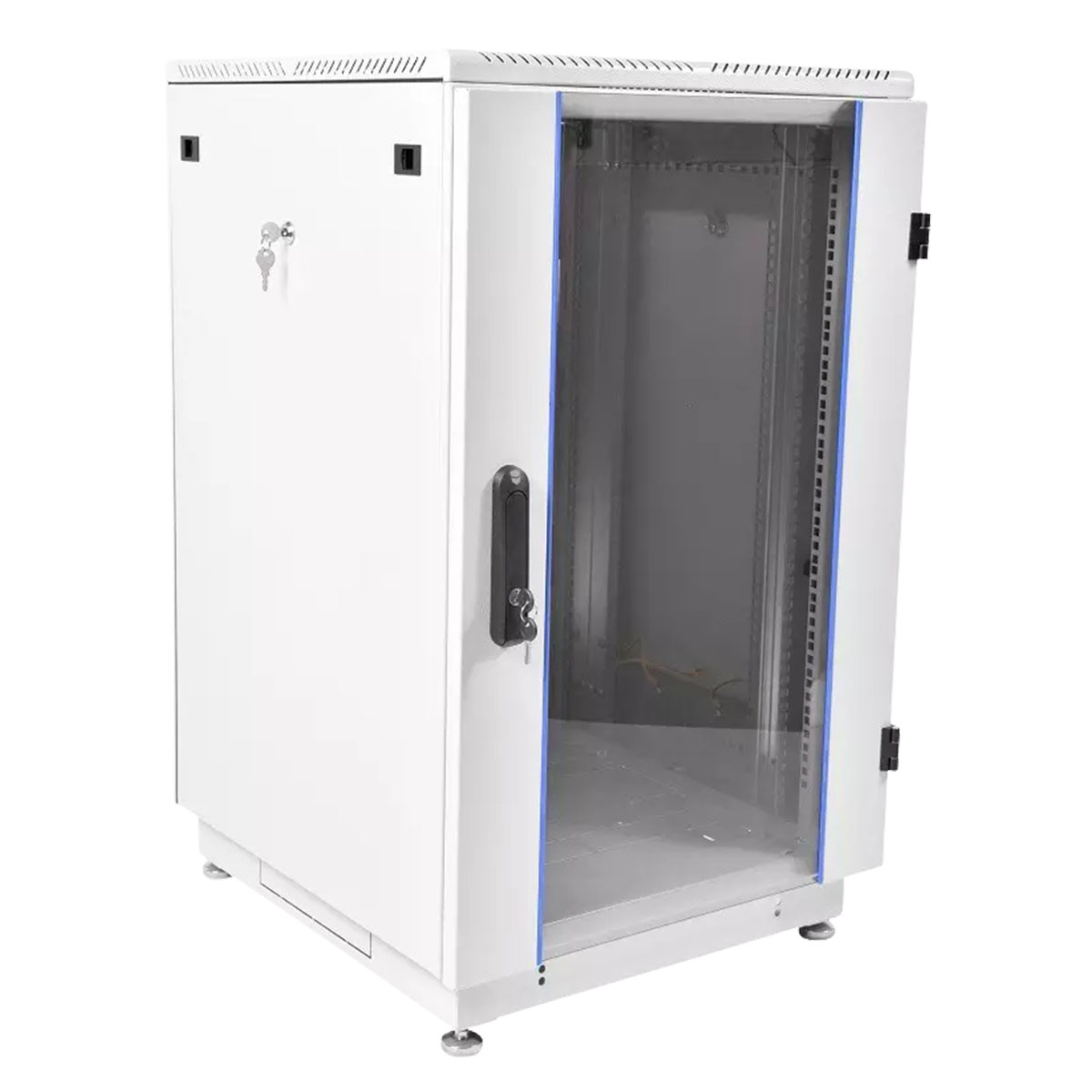 ШТК-М-18.6.6-1ААА - шкаф телекоммуникационный напольный 18U (600×600), дверь стекло. Напольный шкаф серии предназначен для размещения активного и пассивного телекоммуникационного оборудования, в офисных и закрытых промышленных помещениях. Шкаф имеет разборную каркасную конструкцию. Состоит из основания, крыши и двух сварных рам, соединенных комплектом швеллеров (сталь 2мм.). Легок в сборке.