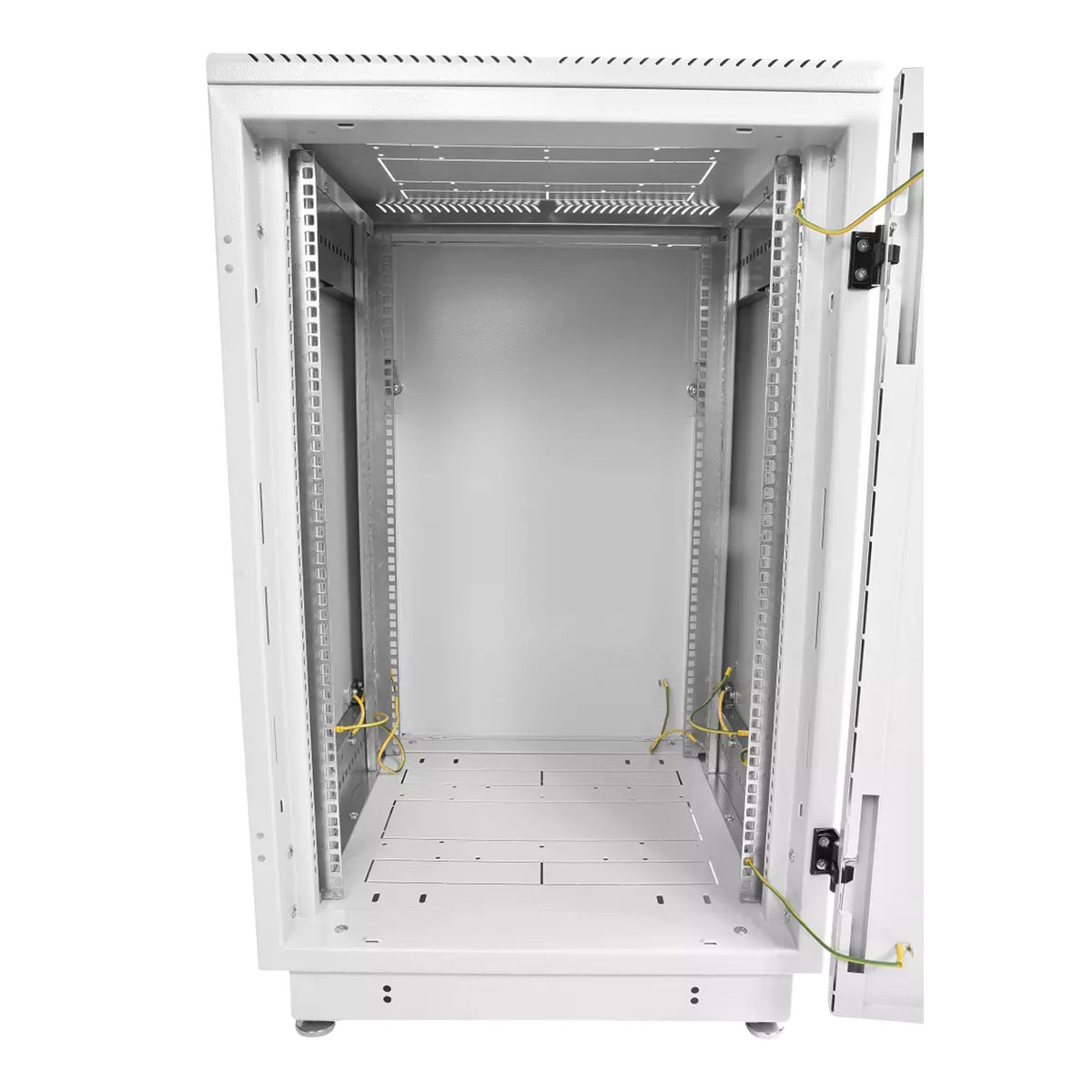 ШТК-М-18.6.6-4ААА - шкаф телекоммуникационный напольный 18U (600×600), дверь перфорация. Напольный шкаф серии предназначен для размещения активного и пассивного телекоммуникационного оборудования, в офисных и закрытых промышленных помещениях. Шкаф имеет разборную каркасную конструкцию. Состоит из основания, крыши и двух сварных рам, соединенных комплектом швеллеров (сталь 2мм.). Легок в сборке.