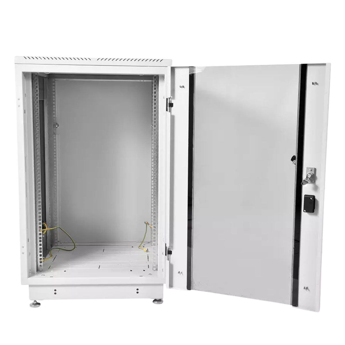 ШТК-М-22.6.6-1ААА - шкаф телекоммуникационный напольный 22U (600×600), дверь стекло. Напольный шкаф серии предназначен для размещения активного и пассивного телекоммуникационного оборудования, в офисных и закрытых промышленных помещениях. Шкаф имеет разборную каркасную конструкцию. Состоит из основания, крыши и двух сварных рам, соединенных комплектом швеллеров (сталь 2мм.). Легок в сборке.